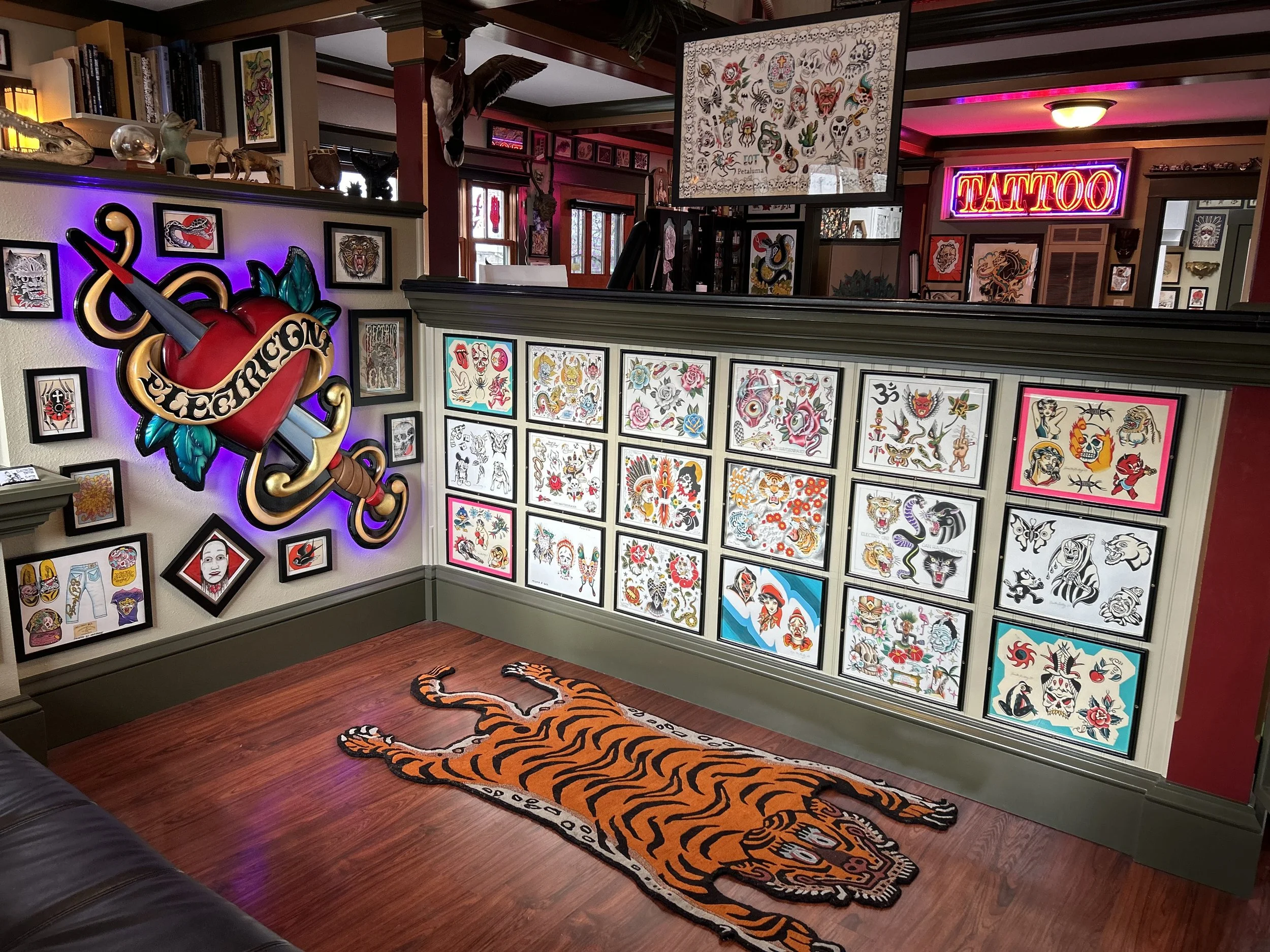 Check out our one of a kind parlor, located in the heart of historic downtown Petaluma. Electric Oni pays homage to the art of tattooing, with every surface adorned in flash, original paintings, tattoo memorabilia, rare taxidermy as well as other oddities and curiosities for your viewing pleasure.